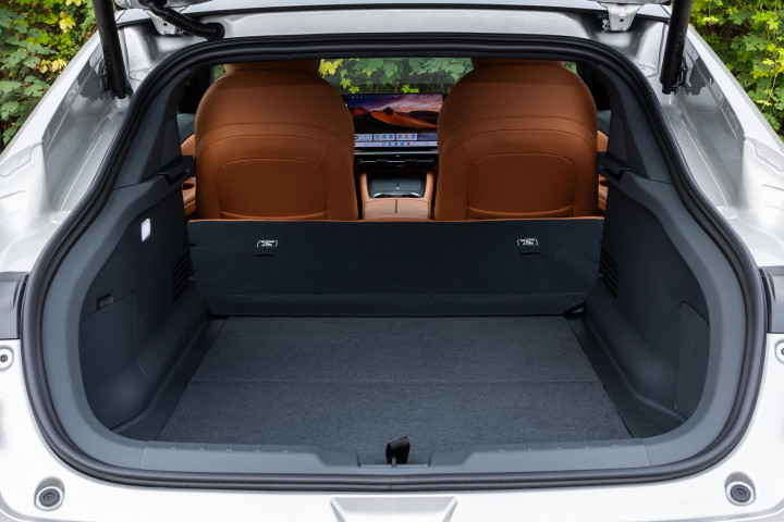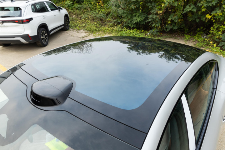 作为一款中大型轿跑,eπ007+的车身尺寸为4880×1915×1476mm,轴距达到2915mm。这样的数据为其带来了宽裕的乘坐空间,尤其是后排腿部空间表现,优于不少同级别竞品。车辆采用全景玻璃穹顶设计,前挡、天幕、后挡三块玻璃总面积达4.2㎡,其中天幕面积为1.82㎡,并采用双层镀膜技术,能有效隔绝紫外线,提升车内通透感。后备厢为电动掀背式设计,开口宽大,便于放置大件物品,实用性得到进一步增强。