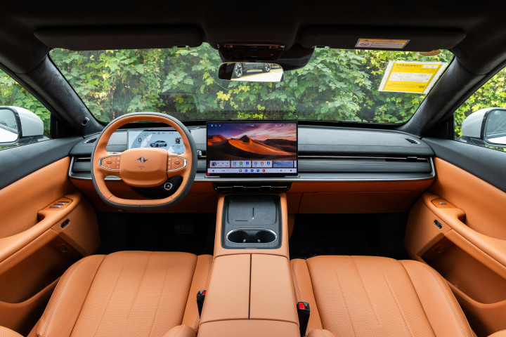 将视线移向车侧,4880mm的车长与2915mm的轴距赋予了它舒展的流线型车身。宽体低趴的弓形大溜背造型是其轿跑灵魂的直观体现,而这一切并非只为美观服务。全车多达23处的空气动力学部件优化,最终成就了0.209的超低风阻系数。这不仅关乎能耗,更关乎高速行驶时的稳定与宁静。无框车门的设计进一步强化了运动属性,同时实现了A柱障碍角的优化,带来了更通透的驾驶视野。