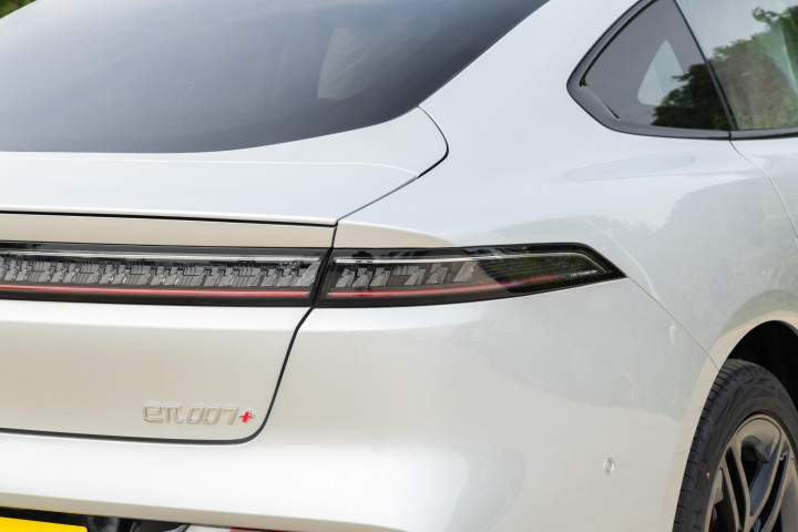 初见eπ007+,特别深刻的感受是其“大道至简”设计哲学所带来的纯粹与力量感。车身没有冗余的线条,型面处理干净利落,通过微妙的光影变化勾勒出轿跑应有的动感姿态。前脸部分,“星光棱镜”LED前大灯内嵌104颗LED灯珠,不仅提供了出色的照明效果,其透视般的点亮效果更在睿智中透出一丝锐利,成为车头视觉的焦点。